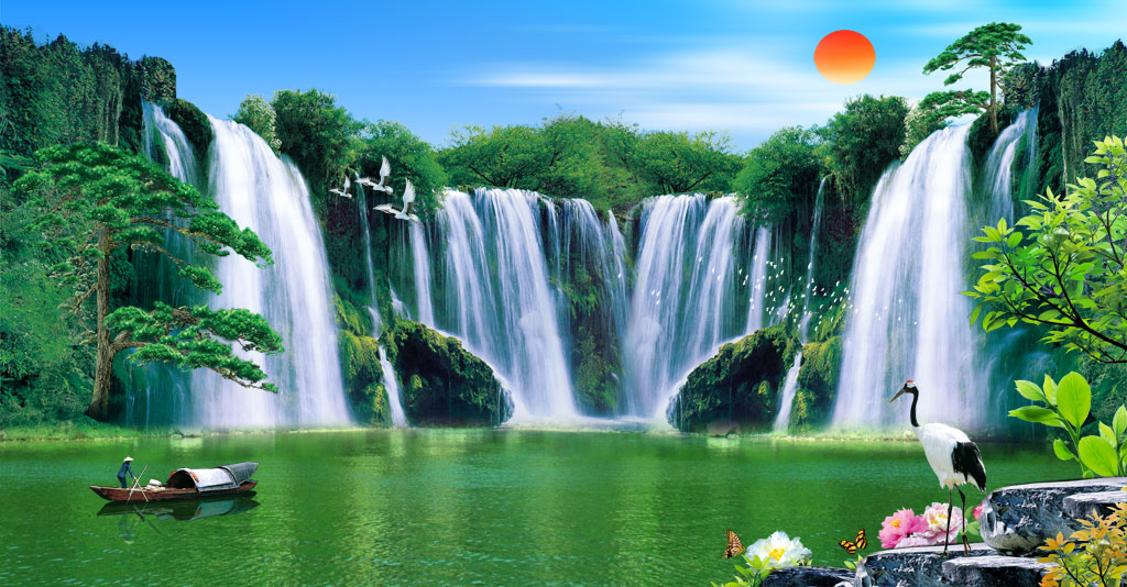 A043843-自然风景-山水-松鹤-迎客松-瀑布